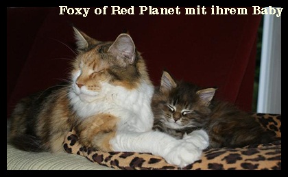 Meine hübsche FOXY hat ein wunderschönes Babys bekommen, sie lebt in einer Maine Coon Zucht in der Schweiz. Lieben Dank Conny für dieses schöne Bild ;o)